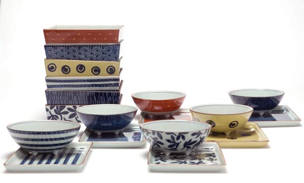 Ho lasciato per ultima la collezione che più mi piace, una serie di ciotole, tazze, piattini, bacchette, tutte in perfetto stile giapponese. Si tratta in pratica di accessori pensati per cibi giapponesi – cinesi, primo tra tutti il sushi, ma che possono essere utilizzati anche per pietanze più nostrane.