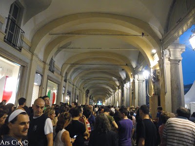 Il pubblico presente ha resistito e aspettato sotto i portici in attesa di una possibile ripresa e di una attenuazione del mal tempo, ma purtroppo questa serata si è conclusa con l’annullamento dello spettacolo.E tutti bagnati e tristi siamo dovuti tornare a casa.