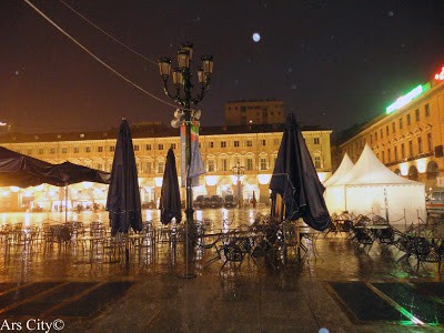 E il terzo giorno la pioggia arrivò al Traffic, una tempesta d’acqua capace di spostare tutto il pubblico di piazza di San Carlo (sembra fossimo in 15000 mila)e trasportarlo sulle sponde laterali, a destra e a sinistra sotto i portici.