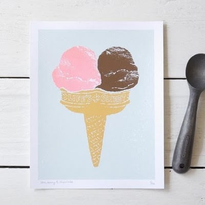 E per chi proprio non può mangiare il gelato?Si può accontentare di un’illustrazione, come magari quelle dello studio creativo Slidesideways di Scott e Jacqui Scoggin dal titolo perfetto:”Life’s Sweet”.