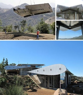 In tempo di crisi non si butta via niente avrà pensato l’architetto David Hertz, nemmeno un Boeing 747. Così dopo averne acquistato uno per 22 mila sterline, ha cercato di riutilizzarne tutte le parti recuperabili. Per farne cosa?Bè una casa,una villa a Mlibù e di lusso per giunta!Le ali sono state utilizzate per il tetto e la parte che conteneva i motori ora è una piscina, 4,5 milioni di pezzi dell’aereo sono state impiegate nella villa, per un peso totale di 400mila libbre, circa 200 tonnellate.Il Boeing 747 è stato prima tagliato in sezioni principali, trasportate poi sulle colline di Malibu tramite degli elicotteri e lì assemblate. Non male no?
