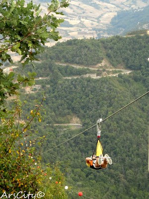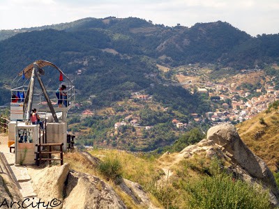 Due borghi suggestivi, arrampicati sulle dolomiti, due cavi d’acciaio che li collegano e che permettono a chiunque se la senta, di volare, sospesi nel vuoto a 400 metri di altezza.Pietrapertosa e Castelmezzano sono i due paesi lucani divenuti famosi per il loro volo dell’angelo, un’esperienza unica, un viaggio di 1550 metri appesi ad un filo di acciaio, sospesi su uno scenario unico, valli e montagne, strade e case,arrivando a toccare velocità di 120 km/h.