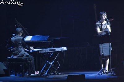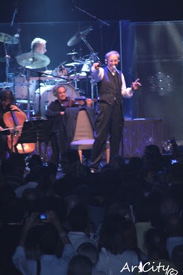 Prima del Maestro si è esibita Arisa, accompagnata al pianoforte ha cantato sei-sette canzoni, tra le quali alcuni suoi pezzi,non poteva mancare “Sincerità” e cover di canzoni famosi.Una voce molto bella e pulita, accompagnata dal solo pianoforte ha fatto decisamente una bella figura, segno che la semplicità spesso premia.