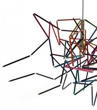 Le matite possono essere usate per fare di tutto, anche per fare luce!”Colouring Light” è una lampada realizzata con 6 scatole da 18 matite colorate, 102 molle in acciaio, nove ganci e due collane in plastica.Un insieme di oggetti che magicamente danno vita ad una scultura, ad un lampadario multicolorato.