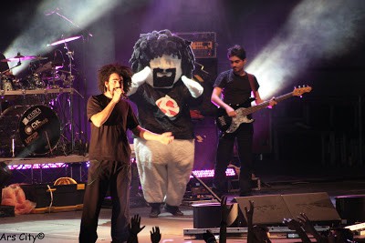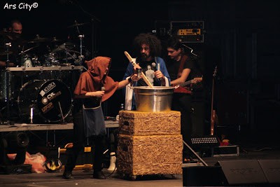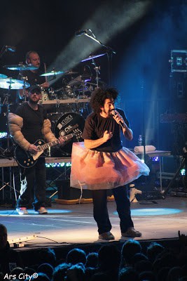 Non è passato molto tempo dall’ultimo concerto piemontese di Caparezza, ora però da Venaria ci siamo spostati nella grande città, e nel luogo dei grandi concerti, il Palaisozaki.Anche il tour è diverso, si tratta sempre dell’Eretico Tour, ma lo spettacolo è cambiato, meno incentrato sull’ultimo albume e ancora più scenografico e teatrale,numerose le scenette per introdurre le canzoni e qualche effetto speciale in più.