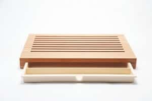 L’ultimo modello presentato porta la firma di Anna e Gian Franco Gasparini che per Alessi hanno ideato il tagliere in legno “Sbriciola”, un complemento per la tavola molto semplice e minimale. La parte superiore dove si poggia il pane è realizzata in legno chiaro e tramite delle fessure permette l’accumulo delle briciole nel sottostante cassettino bianco.