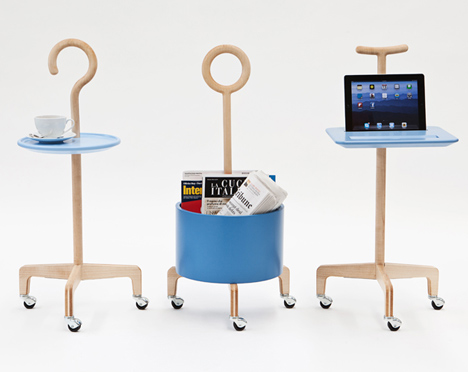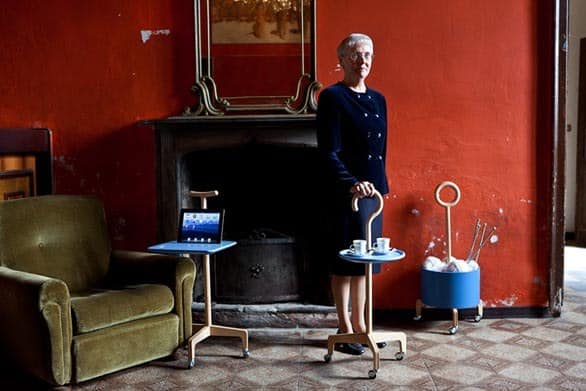 La collezione dal titolo molto significativo “No country for old men” comprende a sua volta la serie “Togheter Canes” tre sostegni per la deambulazione che allo stesso tempo servono per arredare: il primo è composto da un piccolo tavolino, un modo per poggiare la tazza del tè e riportarla in giro, il secondo invece comprende un contenitore per libri o per il set da cucito, mentre il terzo è per le persone più tecnologiche, un ripiano per sistemare l’ipad. Tre oggetti davvero unici, molto funzionali e versatili, perchè oltre a fornire un comodo appoggio per chi ha problemi di deambulazione grazie alle rotelle e ai manici ergonomici, sono anche belli da vedere, colorati e realizzati con materiali caldi, moderni, lontani dai tristi oggetti delle strutture ospedaliere.