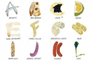 Una soluzione simpatica e alternativa può essere quella di appendere in cucina o in sala da pranzo il poster “Foodie Alphabet” della illustratrice di origine indiane Vidhya Nagarajan, una specie di abecedario molto particolare, dove ogni lettera dell’alfabeto è disegnata come l’alimento al quale da il nome, ad esempio la lettera “l” viene disegnata come un porro in inglese “leek”, oppure la lettera “g” diventata una bella fetta di gorgonzola.