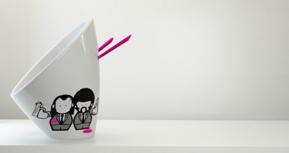 Anche le ciotole per mangiare il riso hanno la loro importanza, se cercate qualcosa di davvero originale ecco le Japanese Bowl del designer messicano Manuel Estrada.A parte la loro forma molto singolare, con il bordo molto alto e un taglio diagonale, la loro novità consiste nelle decorazione, avete riconosciuto i personaggi?Sono i protagonisti di Pulp Fiction in stile manga.