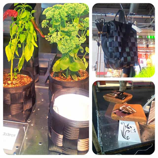 Le bellissime borse e i cesti di 959 realizzate con le cinture di sicurezza e il tavolino realizzato da Andrea Scarpellini.