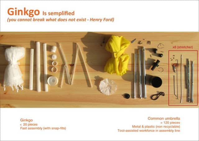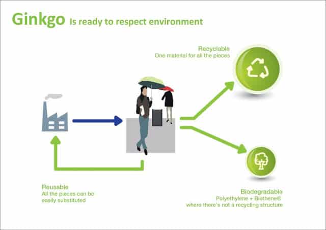 L’ombrello Ginkgo  già vincitore del Idea to Product Competition Italy 2011, concorso indetto dal Politecnico di Milano per valorizzare i frutti della ricerca uiversitaria con il miglior potenziale sul mercato, si è ora aggiudicato il primo posto della selezione italiana del James Dyson Award, il premio indetto dall’omonima casa inglese per promuovere tra gli studenti di design una cultura dell’innovazione fatta di idee tangibili destinate a fare la differenza.