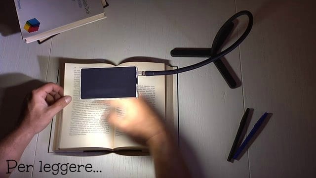 Questa piccola scatola luminosa è totalmente autonoma, sul suo lato corto è presente sia l’aggancio usb per collegarlo al pc e ricaricarlo, sia l’aggancio per i vari supporti disponibili.