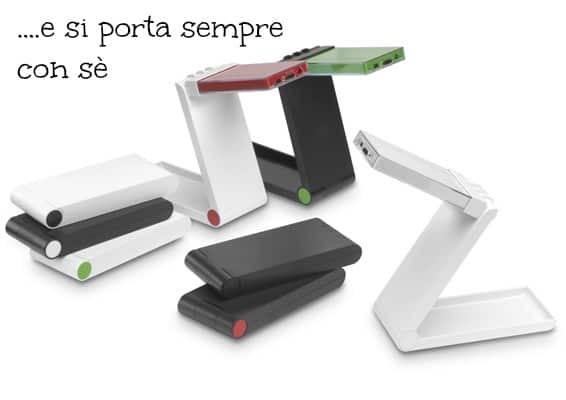 Una comoda e colorata custodia permette infatti di portare la luce al led dove si vuole, e utilizzarla quando vogliamo, anche perchè la custodia, oltre a proteggere questo corpo illuminante si trasforma anche in un funzionale supporto, una base per una lampada da lettura.