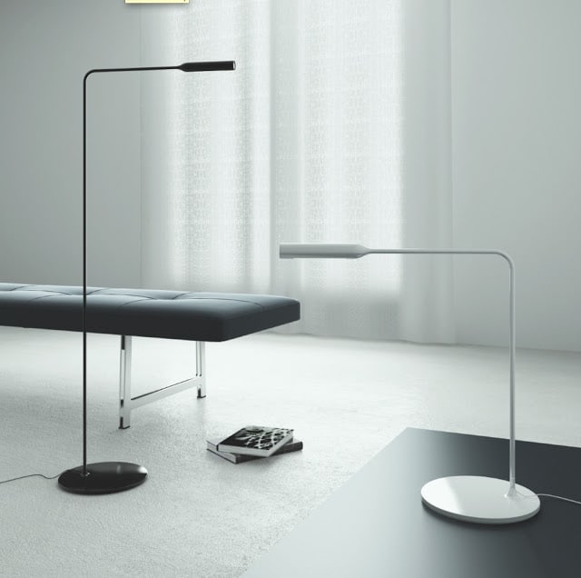 Ideata dal celebre studio Foster & Partners per l’azienda italiana Lumina, Flo è nata come lampada da lettura nelle versioni da tavolo, da comodino, da terra e con morsetto.