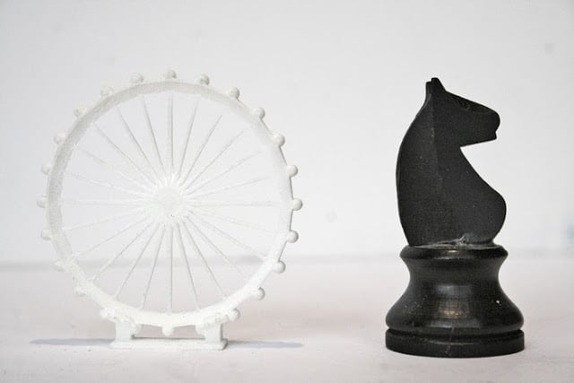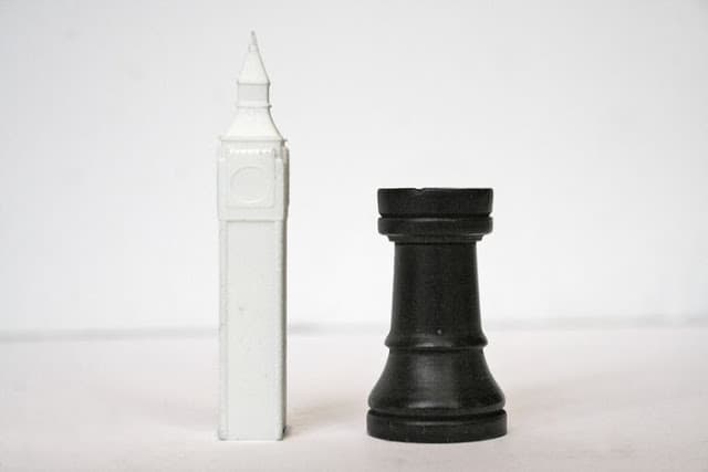 Su una classica base bianca e nera sono state realizzate delle pedine che non rappresentano i classici pezzi della regina o dell’alfiere, ma sono riproduzioni degli edifici più importanti e rappresentativi della capitale della Gran Bretagna.
