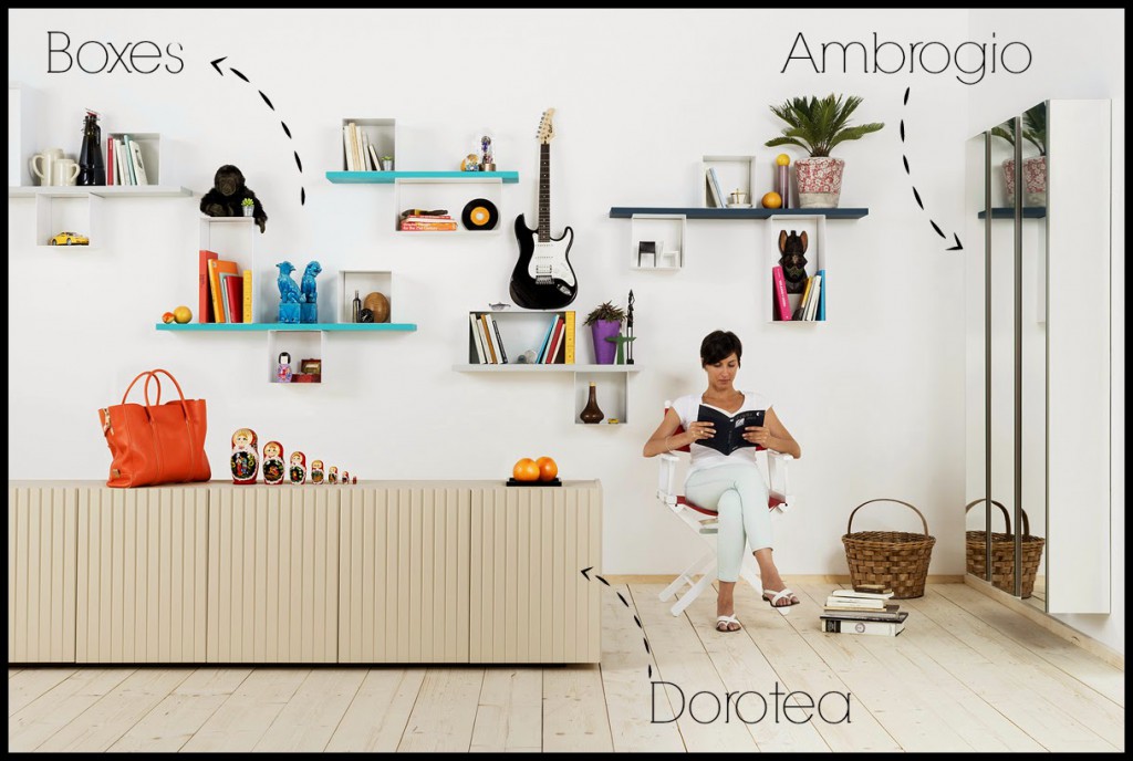Tra le novità proposte da Minotti Italia c’è anche una versatile e divertente collezione di mensole dal nome Boxes. Si tratta di mensole dalla forma insolita, delle scatole di metallo bianco unite a delle mensole in legno, l’unione tra questi materiali e queste forme così diverse tra loro danno vita a dei complementi d’arredo che possono essere appesi in quattro differenti posizioni.