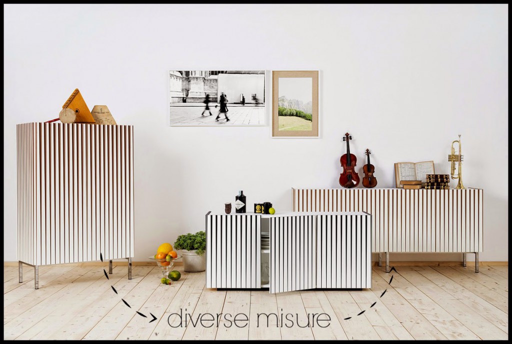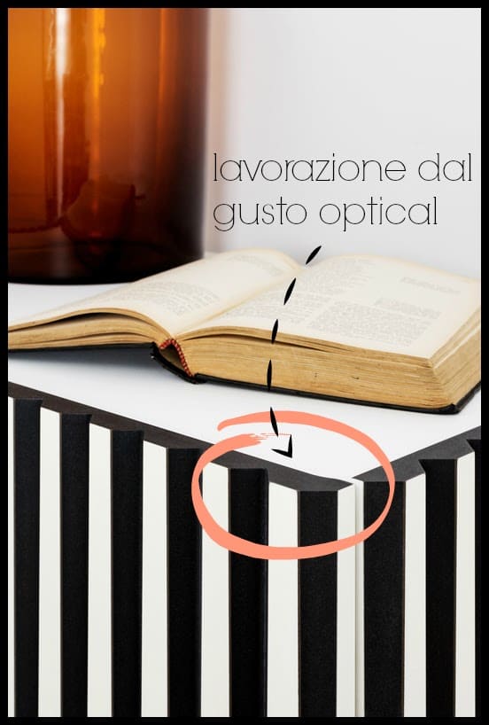 Dorotea è una madia dal gusto decisamente optical, disponibile in diversi formati e in diverse colorazioni ha