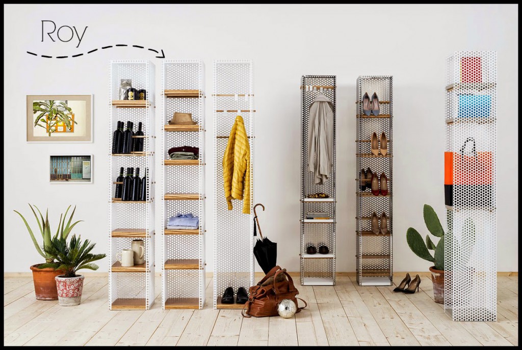 Roberto Mora ha ideato per Minotti Italia Roy, un contenitore per la casa che ha il suo punto di forza nella versatilità. Roy è infatti composto da una struttura fissa in lamiera metallica forata e da una serie di mensole in legno che possono essere spostate e fissate all’interno della struttura a seconda delle esigenze. Così Roy può facilmente passare da appendiabiti, a portascarpe, da cantinetta per le bottiglie del vino a comodo ripostiglio per gli accessori da cucina.