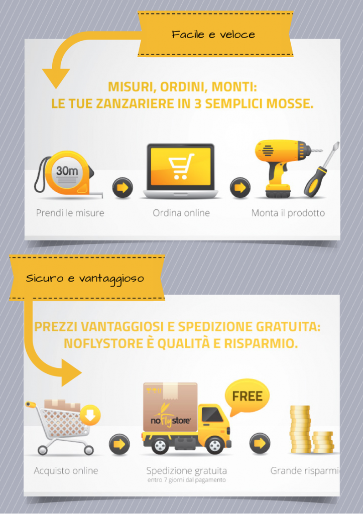 Come avrete capito NoFlyStore è un negozio di vendita online di zanzariere, un sito dove potete trovare tantissimi modelli diversi e che vi permette in tempo reale di avere una personalizzazione del prodotto che vi serve e un preventivo definitivo. Si tratta di un e-shop curato nei minimi dettagli, realizzato in modo da seguirvi passo passo nella scelta della zanzariera che vi serve, sia che si tratti di un modello per la finestra o per la porta, e che abbia misure standard oppure fuori scala.
