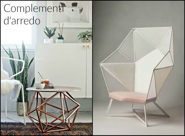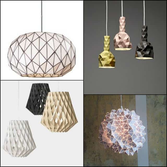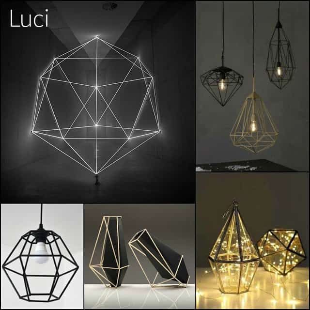 Ci sono lampade semplici e minimali caratterizzate da un intelaiatura di metallo che propone figure geometriche più o meno complesse, oppure lampadari composti da triangoli ma accostati tra loro in maniera nuova e originale.