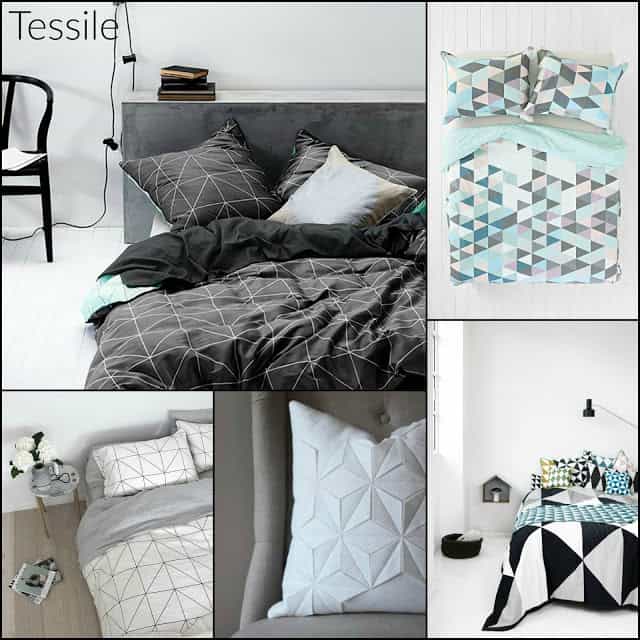 Triangoli e linee entrano anche in camera da letto, tantissime le fantasie pensate per piumini, lenzuola, plaid. Ci sono composizioni dai colori pastello o tessuti che giocano con il classico contrasto bianco e nero.