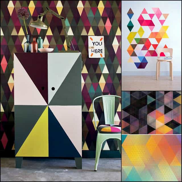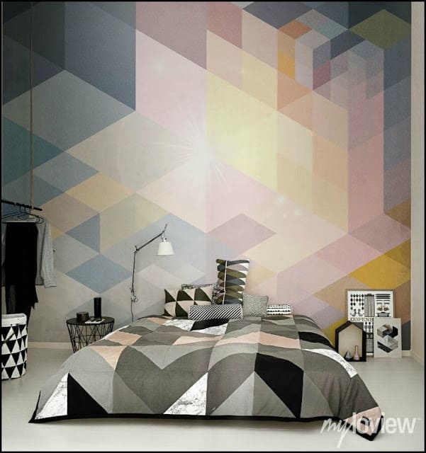 Il tema degli incastri geometrici e delle forme complesse non si ferma solo agli accessori e ai complementi d’arredo, ma invade la casa e occupa ogni superficie, dal pavimento alle pareti, usate a volte come vere e proprie tele pittoriche.