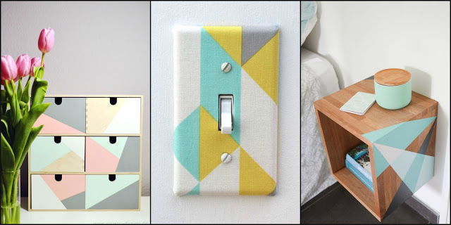 E con un po di fantasia si possono personalizzare accessori e arredi sempre in tema geometrico, basta qualche washi tape colorato o della vernice.