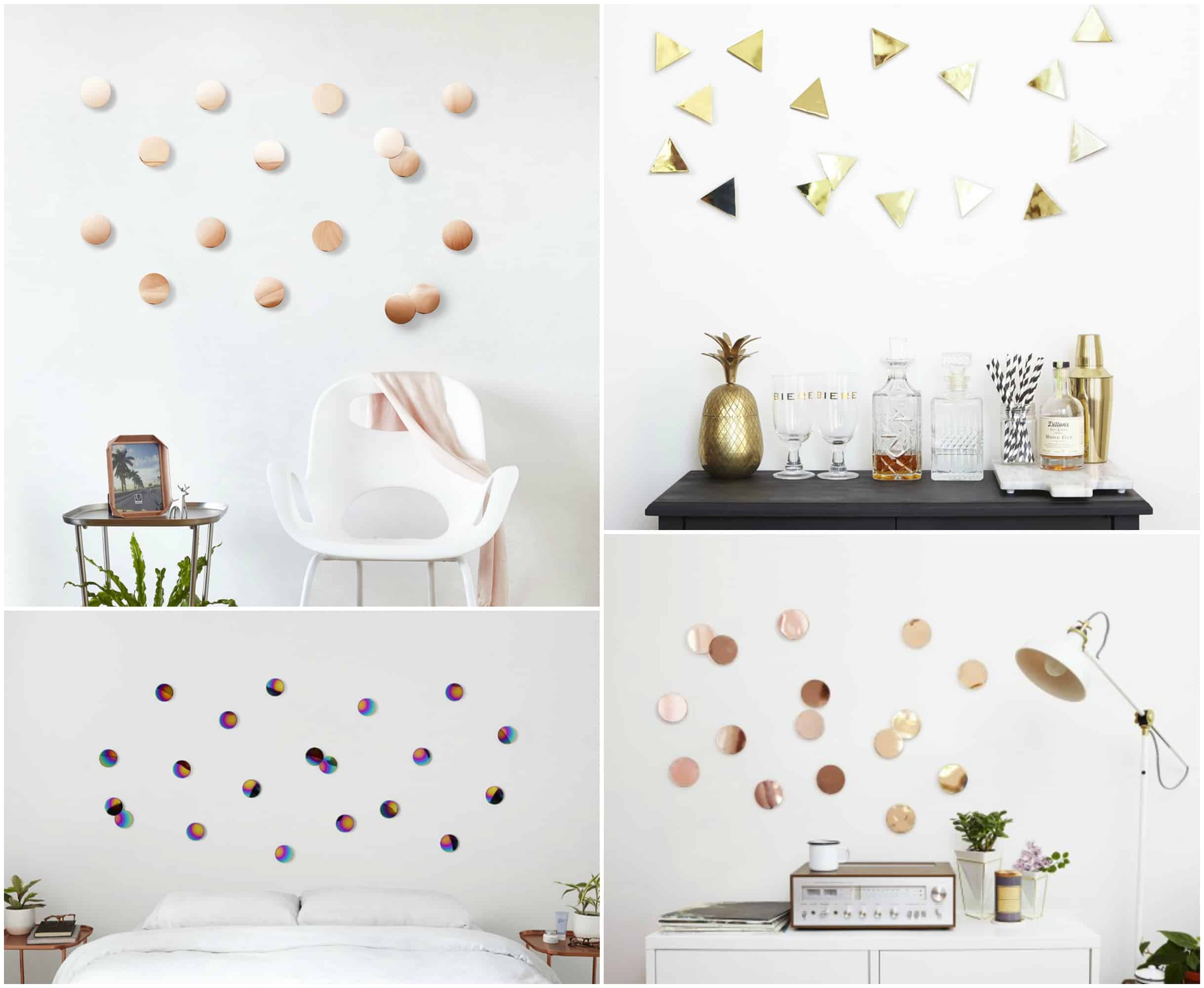 Esistono in commercio delle decorazioni murali in metallo da appendere con appositi adesivi.