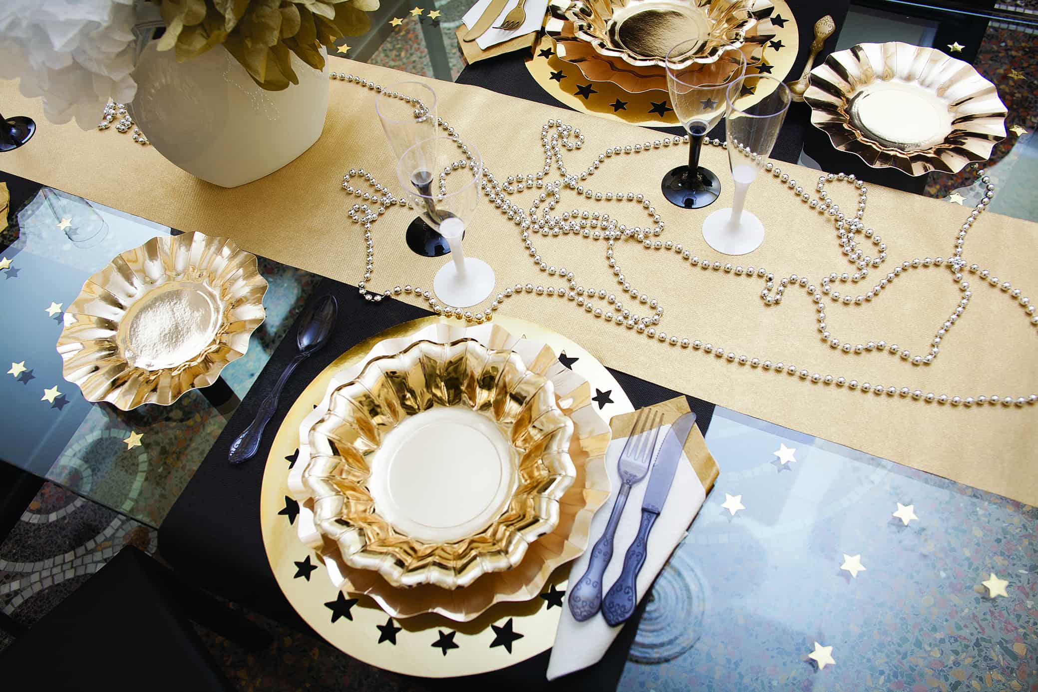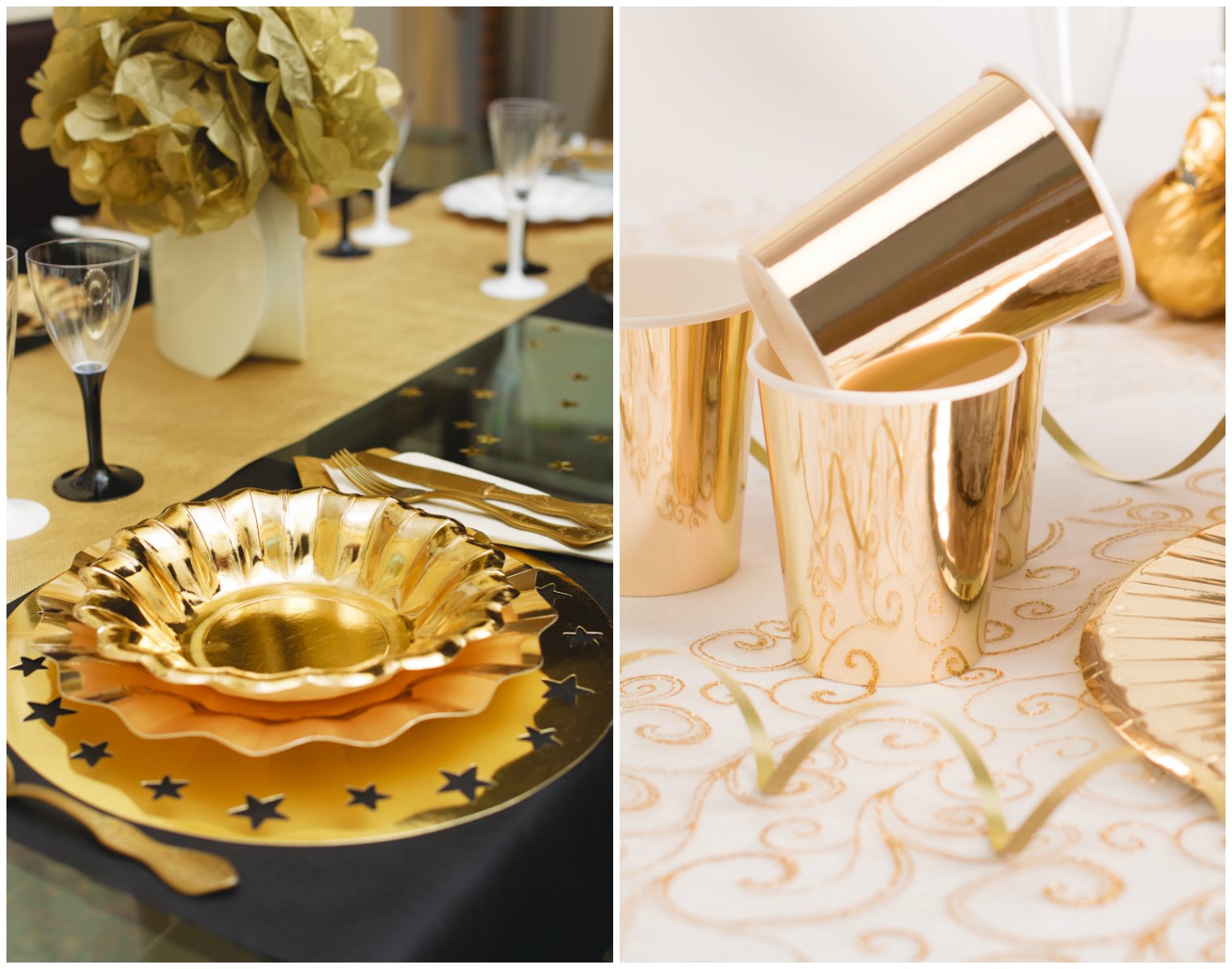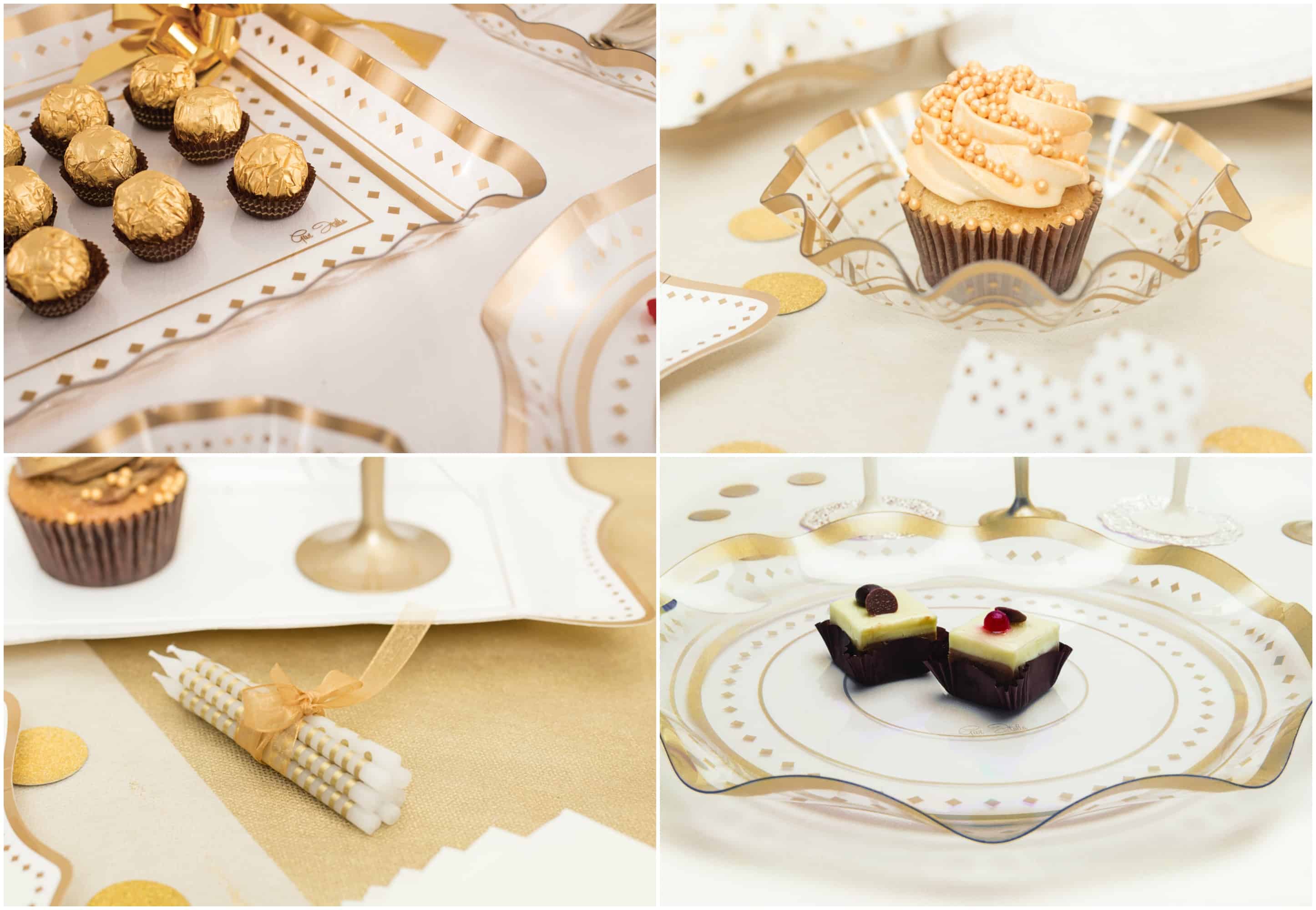 Esempio di tavola allestita con i prodotti della Linea Gold Grace di Partysmile.com