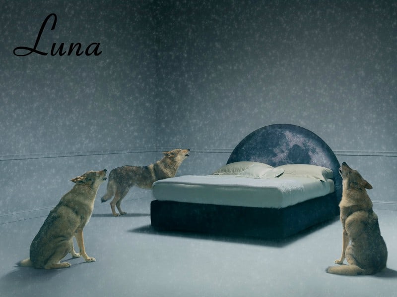 Poi c’è Luna, un letto dal design contemporaneo, linee asciutte e una testiera suggestiva.