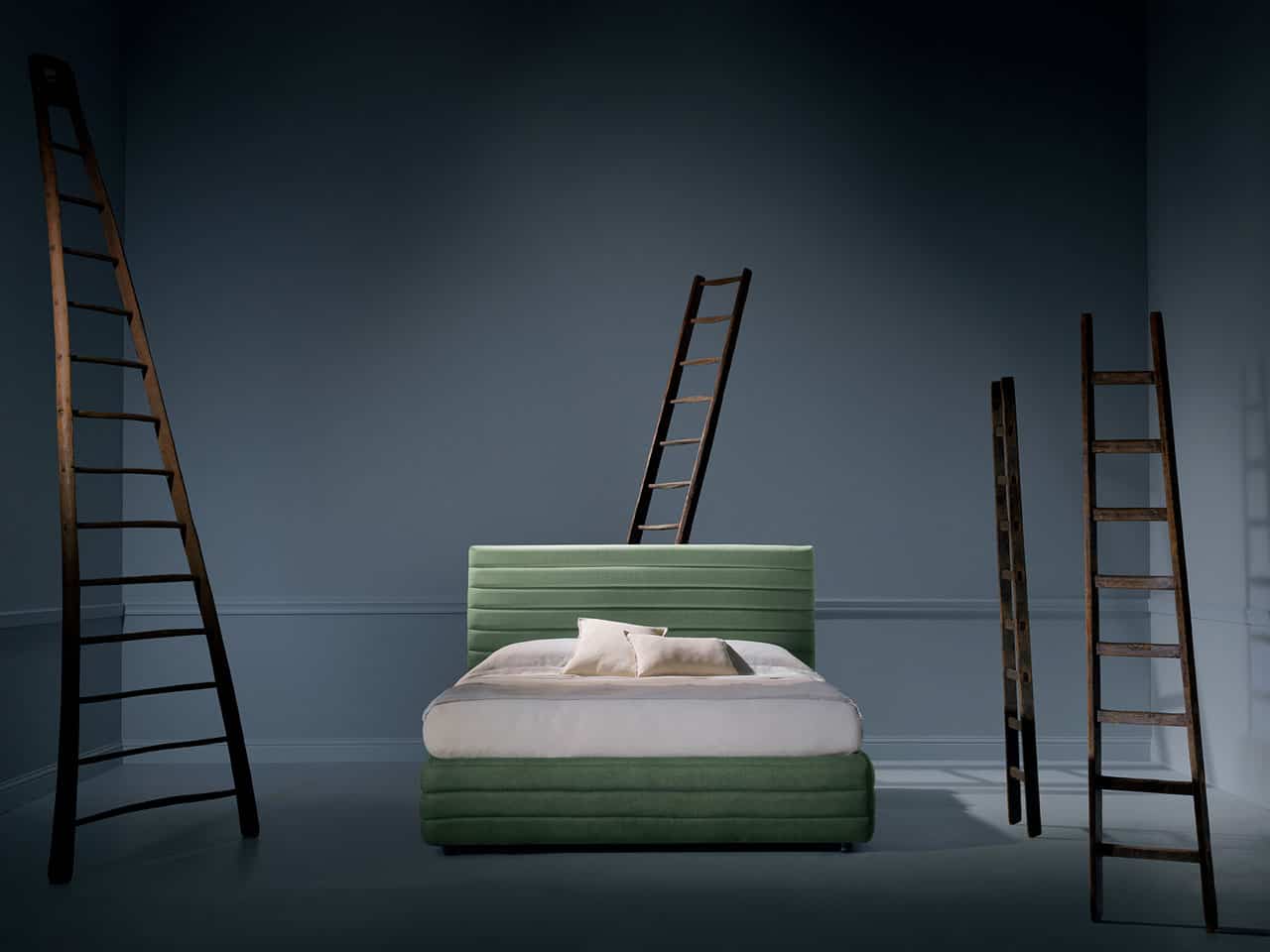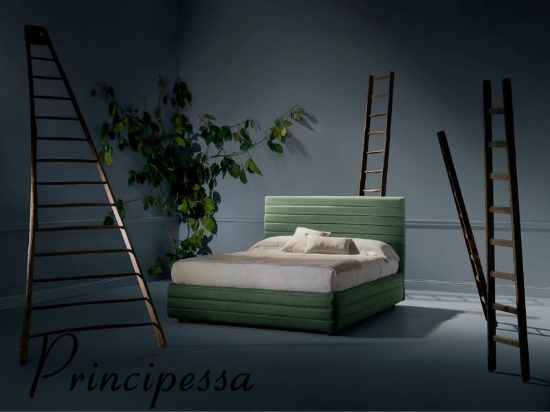 Principessa è un letto composto da differenti livelli, un gioco di strati orizzontali che danno personalità ed eleganza ad un letto adatto per un ambiente moderno.