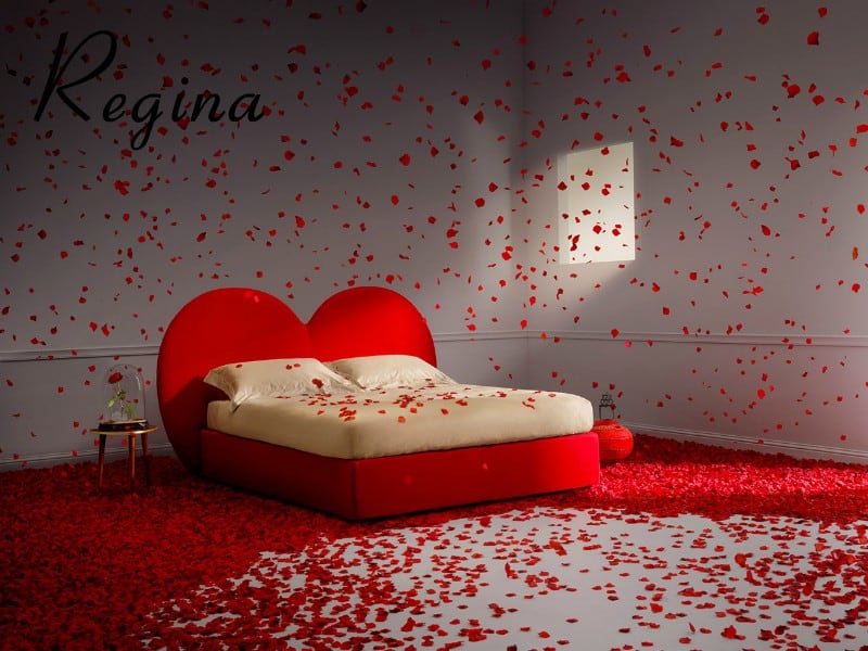Un letto che si chiama Regina non poteva che essere così: imponente e assolutamente unico.