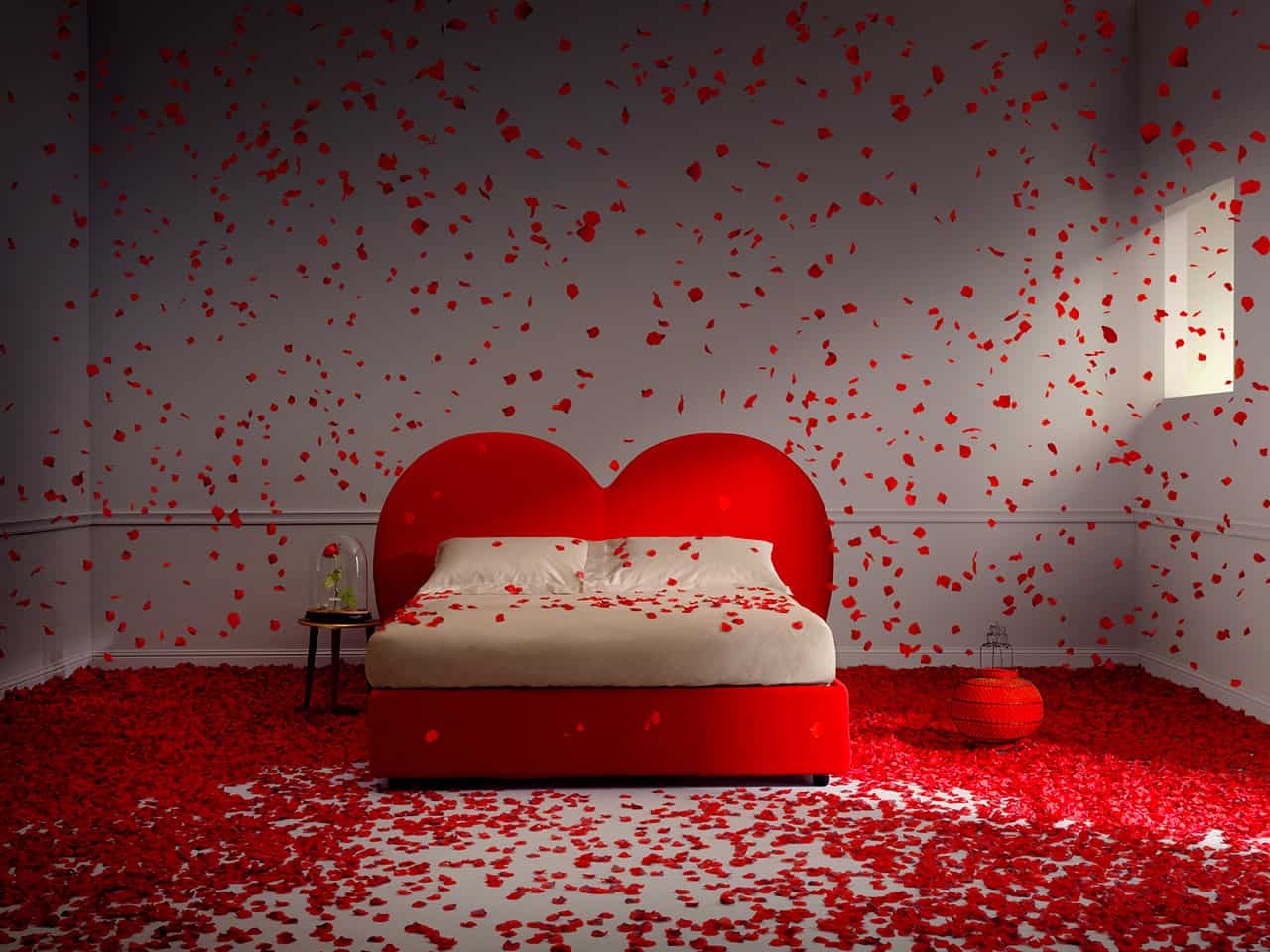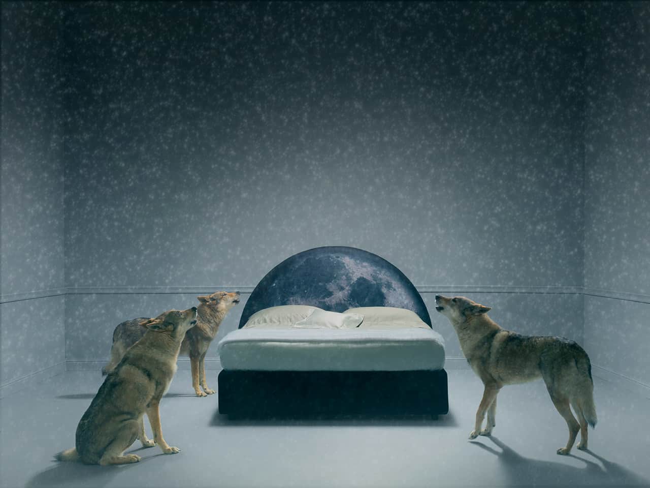 Luna è il letto matrimoniale che racchiude il cielo in una stanza, una vera luna che cala dal cielo e trasforma la stanza in un ambiente magico, dal sapore cosmico.