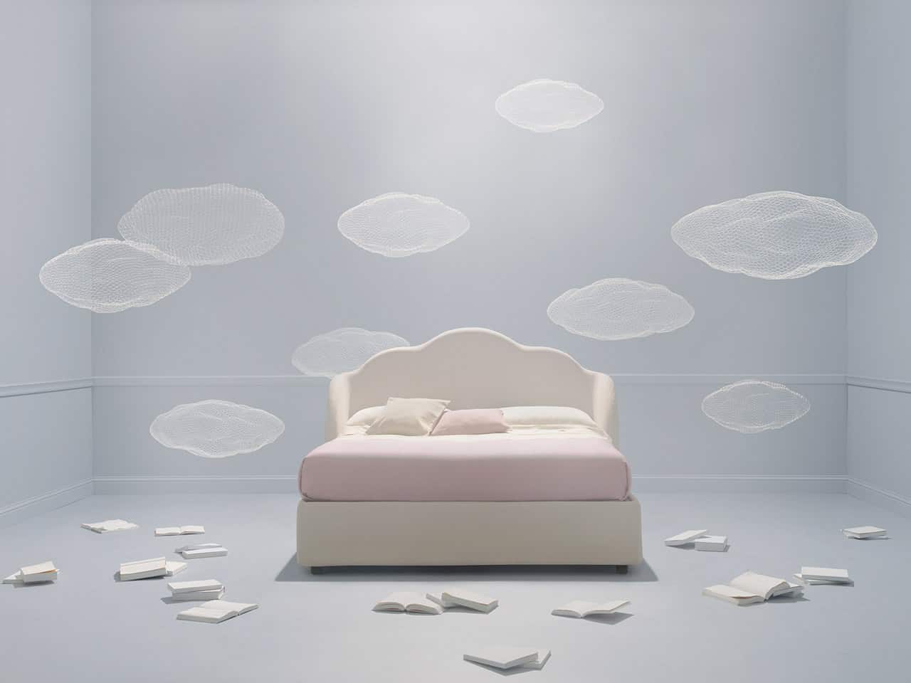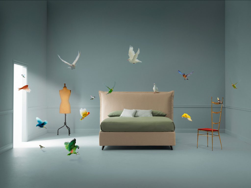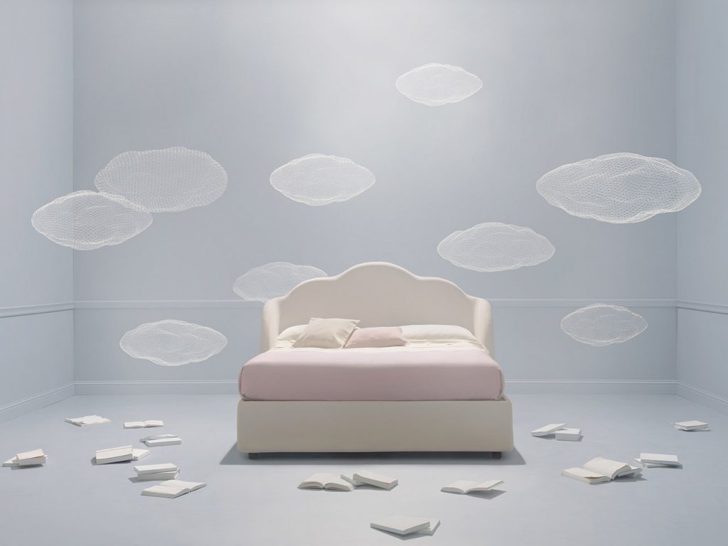 Nuvola, il letto che più di tutti richiama il mondo del sogno, che ti invita a sdraiarti, lasciarti avvolgere dal suo candore e dalla sua morbidezza, e cullarti verso il sonno.