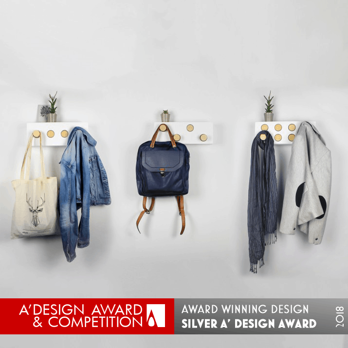 Un appendino da parete interattivo che consente la creazione di composizioni diverse a seconda delle esigenze dell’utente. Il prodotto in legno ha una forma rettangolare che contiene una serie di pulsanti circolari a filo, i ganci, che l’utente distribuisce in base alle sue esigenze.