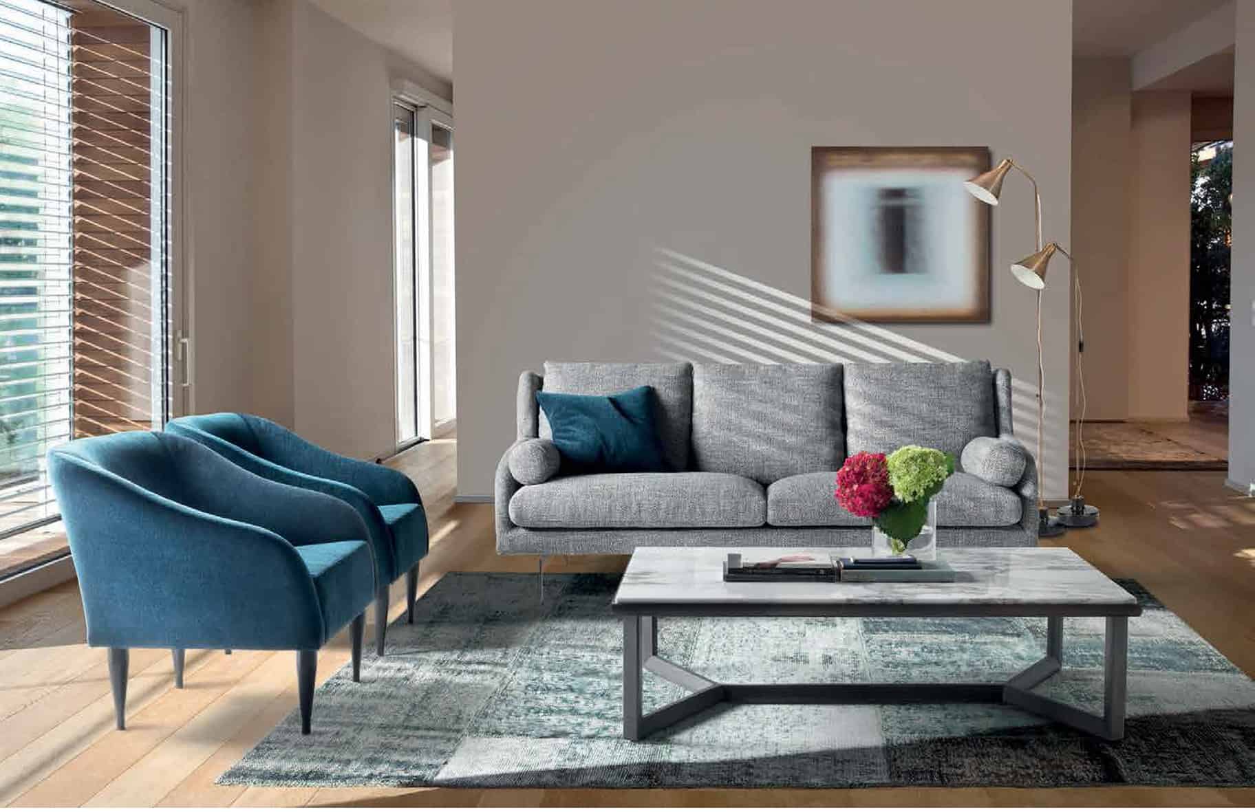 il confortevole e accogliente divano George, un modello componibile e versatile, disponibile in una nuova collezione di tessuti;