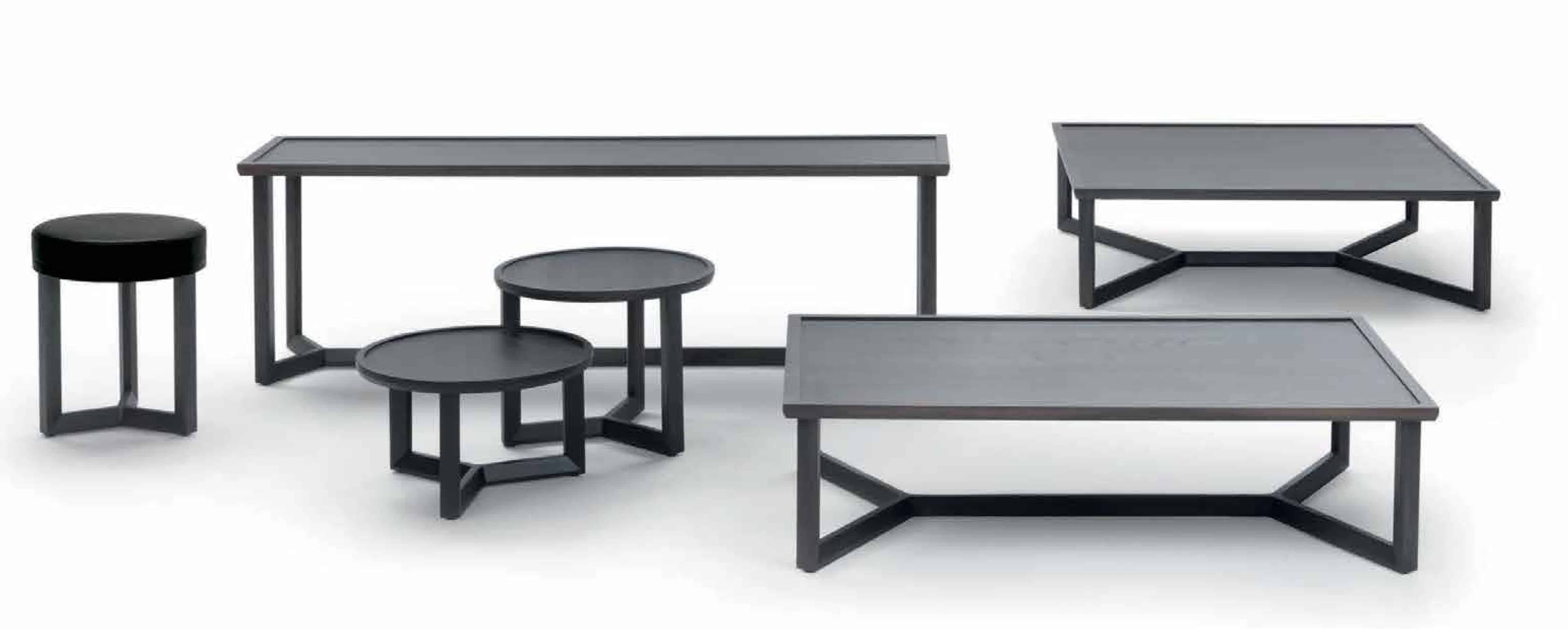 Infine una serie di tavolini, Jo Jo: modelli di differenti dimensioni e diverse forme, tavolini quadrati, rettangolari o tondi, in legno massello di frassino inoltre disponibili anche con i top in marmo.
