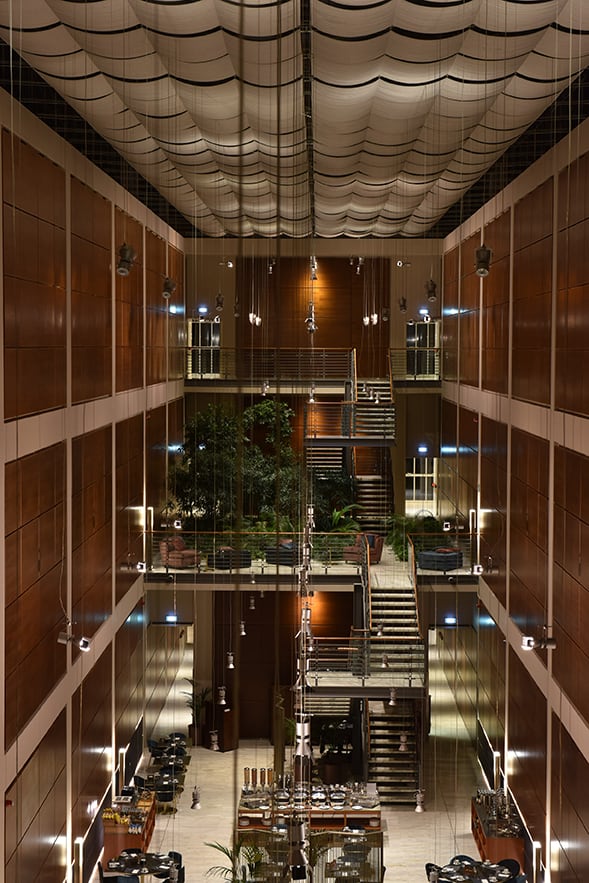 rimaniamo al Lingotto dove troviamo l’albergo inaugurato nel 2018. Il recente restyling interno offre uno stile industrial, essenziale e maestoso, dominato dai colori del ciliegio, dell’ottone e dell’azzurro intenso: un’alternanza di materiali caldi e freddi, linee rette e curve, in cui trovano ospitalità tanti elementi d’arredo del grande design italiano.