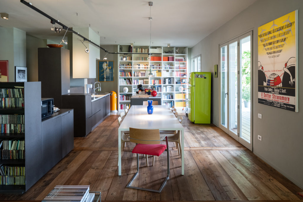 In un appartamento affacciato su Parco Ruffini, le pareti e l’arredamento sono pensate per mettere in contatto la vista sul parco e la vita della casa. Uno stile semplice e curato, caratterizzato da tocchi di colore e complementi d’arredo di design.