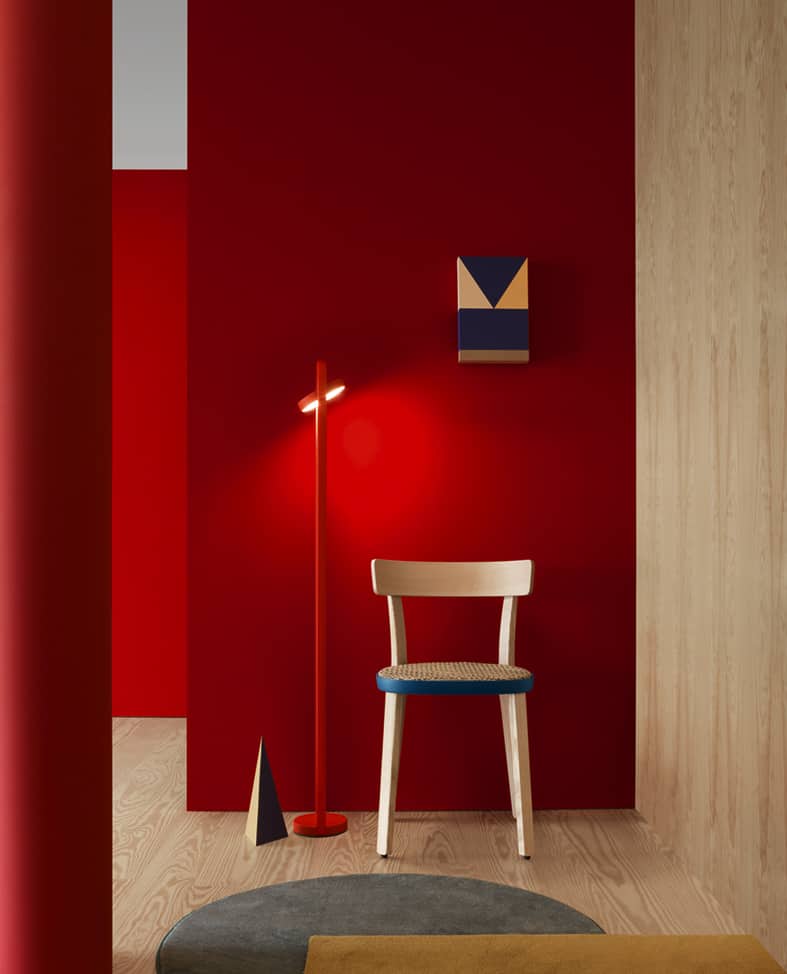 Qui trovano posto la sedia Folk, di CMP Design (a sinistra), realizzata in frassino, ha una linea molto semplice che ricorda le sedute più tradizionali.