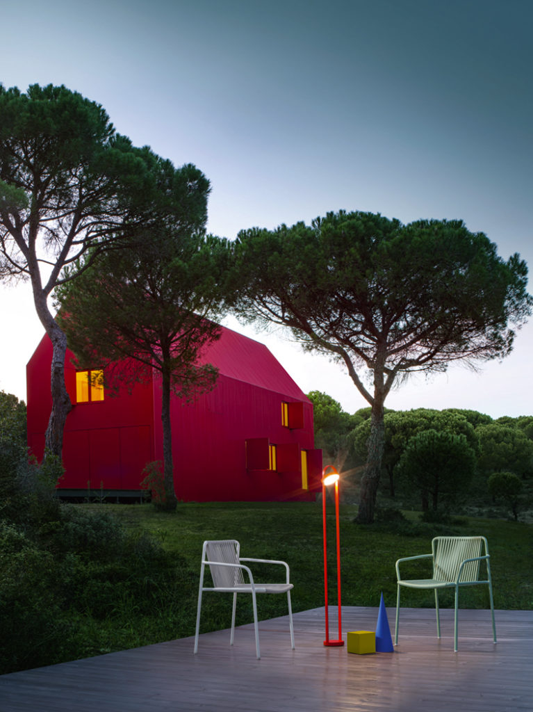 “La forma di questa casa è archetipica, caratterizzata da linee semplici e nette, simile al disegno di un bambino,di un colore rosso acceso, che risveglia quella vena onirica che nell’immaginario collettivo e romantico riporta alla mente l’immagine romanzata della casa rossa sul finire del bosco. “