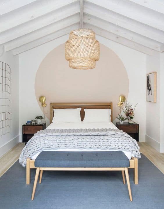 In questo caso non vi parlo semplicemente di dipingere la parete del letto, ma di giocare con il colore per evidenziare alcuni particolari, per mettere in risalto il letto, e per creare forme geometriche che si trasformano in delle specie di testiere.