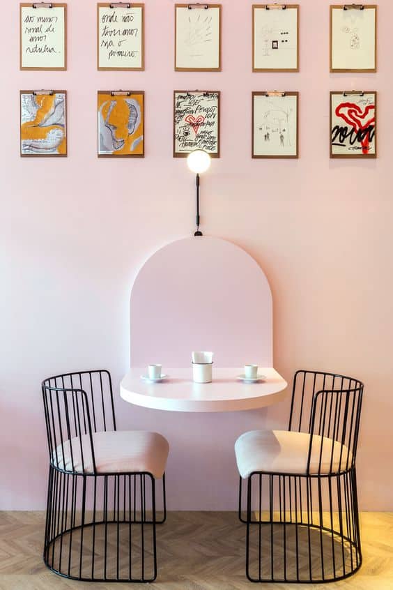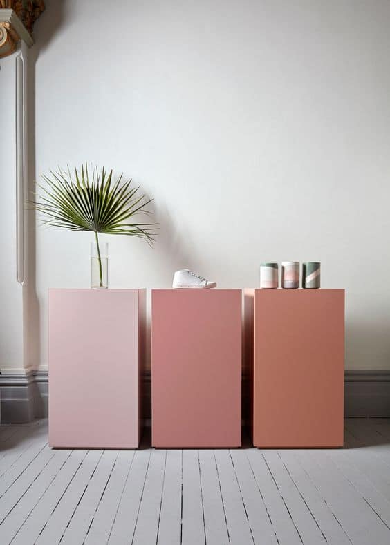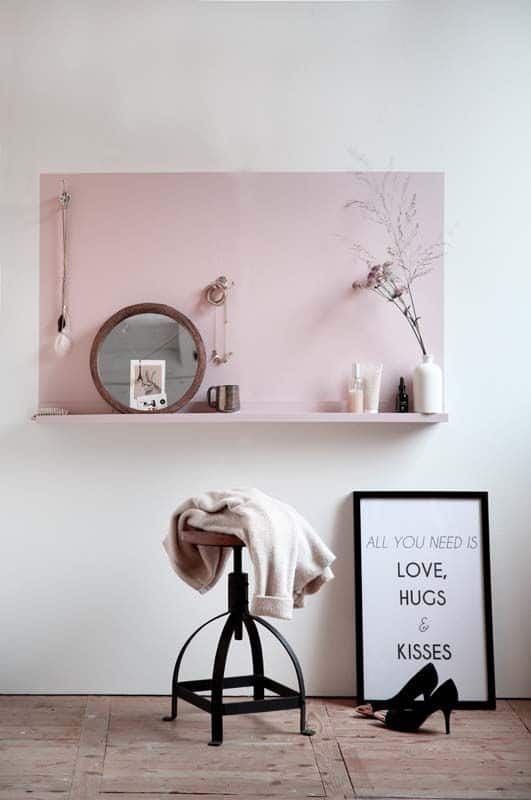 Possiamo non solo pitturare le pareti di rosa, ma scegliere carte da parati o piastrelle di questa tonalità di colore: dipingere mensole o mobili nello stesso colore rosa in modo da dare continuità ( e amplificare visivamente gli spazi) oppure giocando a contrasto con tonalità più scure o più chiare, dando carattere e originalità alla stanza.