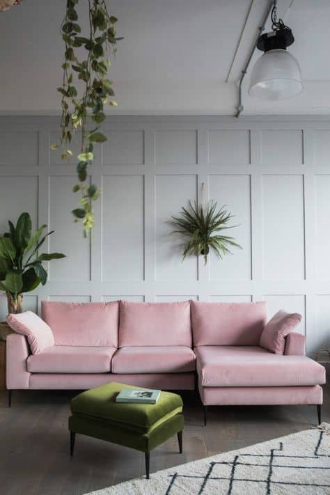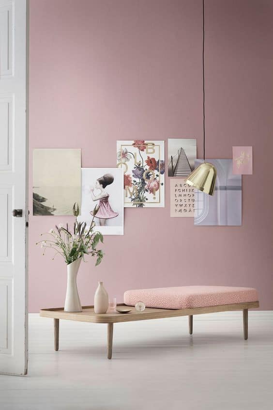 Nelle versione invece rosa più intenso e saturo, può essere utilizzato per personalizzare solo una parte della parete creando dei decori o dei giochi geometrici: utilizziamo il rosa per dare tocchi di colore a porte, finestre, nicchie o creare pareti d’accento.