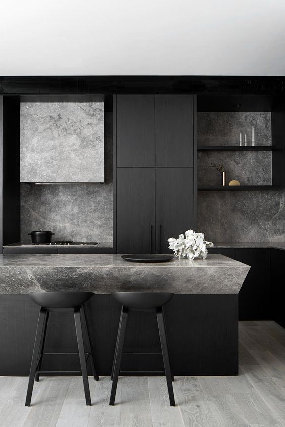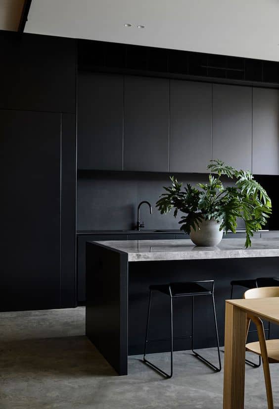 Sarebbe meglio utilizzarlo sempre in abbinamento con colori luminosi, chiari, bilanciare parti scure con luci (naturali e artificiali) e complementi d’arredo e materiali chiari. Non bisogna per forza utilizzare il bianco, anche solo un pavimento di legno chiaro o un bancone di marmo, può alleggerire l’intero spazio.