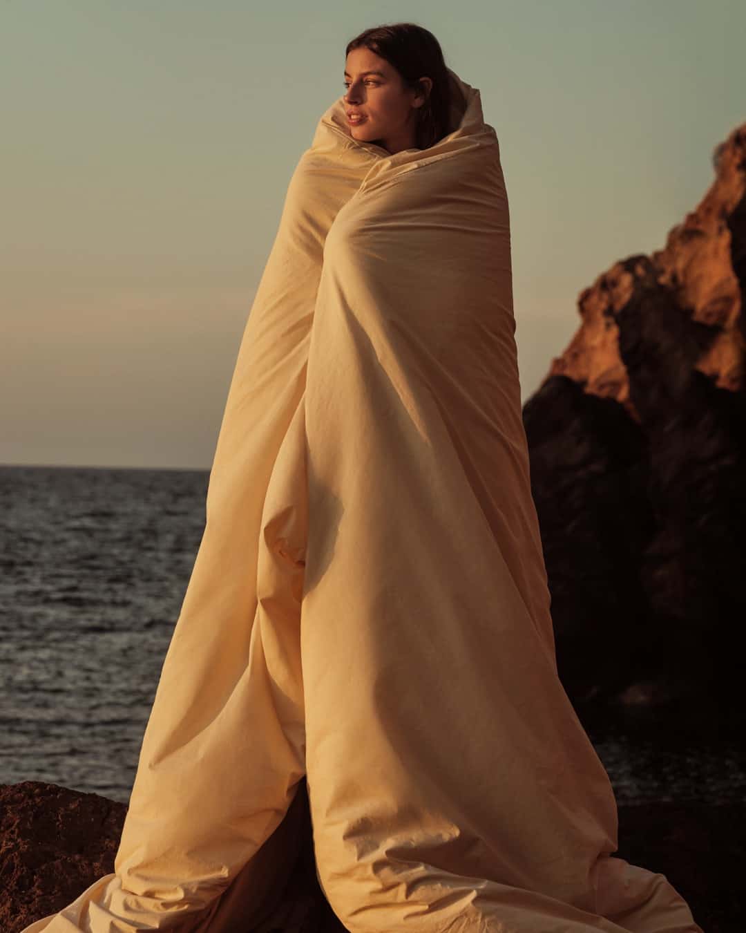 Osservando le immagini realizzate per il lancio della collezione, si intuisce subito il mood che sta dietro alla sua ideazione: ci troviamo su una piccola spiaggia, in uno spazio riservato, o in un vasto prato verde, si respira calma, relax, voglia di leggerezza.
