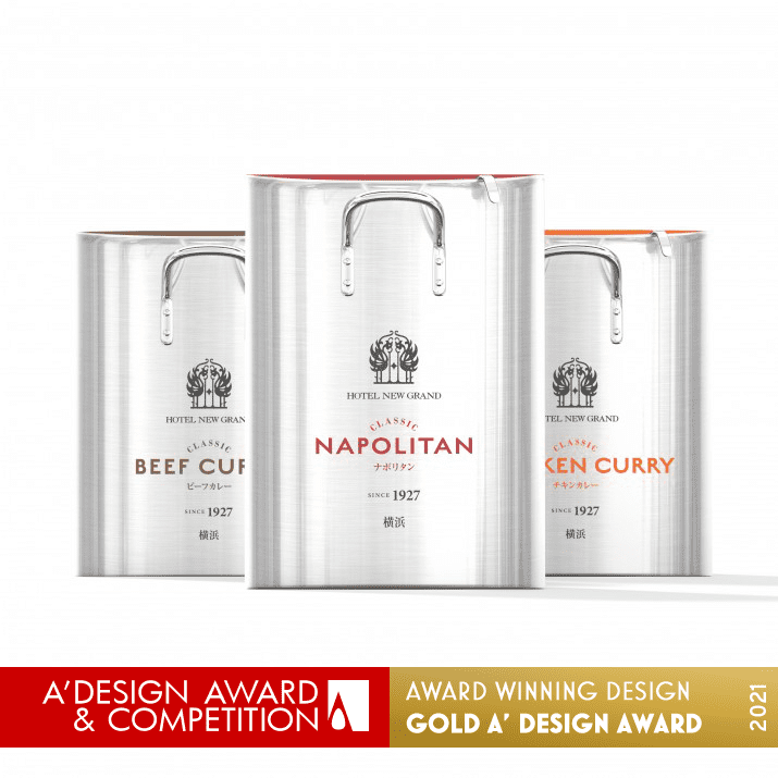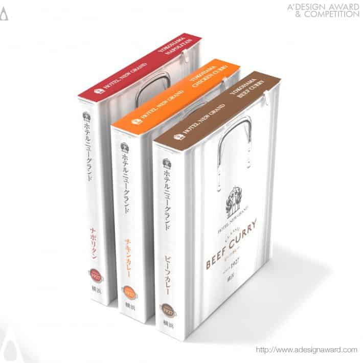 Questo prodotto è un pacchetto di piatti pronti (manzo al curry, pollo al curry, napoletano – salsa di pasta) per Hotel New Grand, un hotel a Yokohama che ha aperto nel dicembre 1927.