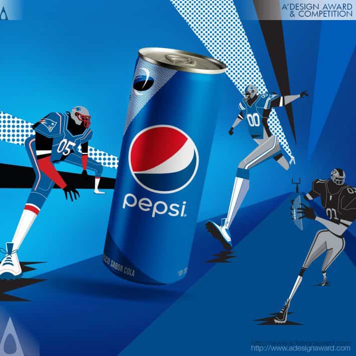 Ispirata al dinamismo di questo sport, Pepsi ha sviluppato uno stile di illustrazione che cattura la fisicità del gioco ed esagera le proporzioni dei giocatori.