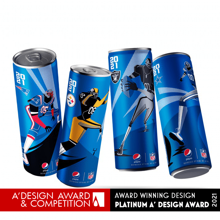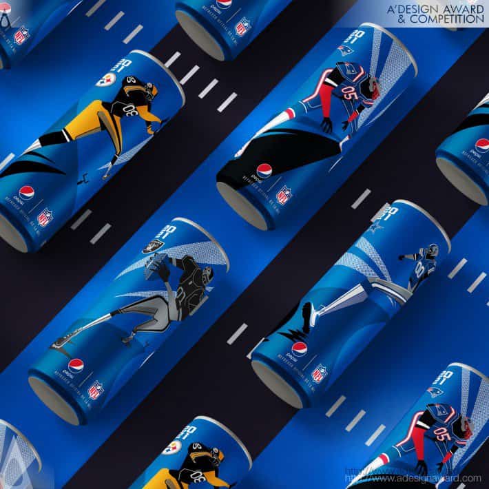 Utilizzando tavolozze di colori specifiche per la squadra, Pepsi ha creato una collezione per il Messico, progettando lattine per Dallas Cowboys, Pittsburg Stealers, Las Vegas Raiders e New England Patriots