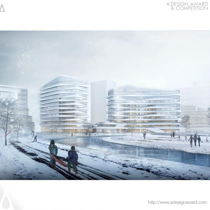 La spirale inizia dal South Waterfront Headquarter Building nel punto centrale, si estende attraverso rigide griglie del sito collegando viali fiorenti e abbracciando numerose attività pubbliche.